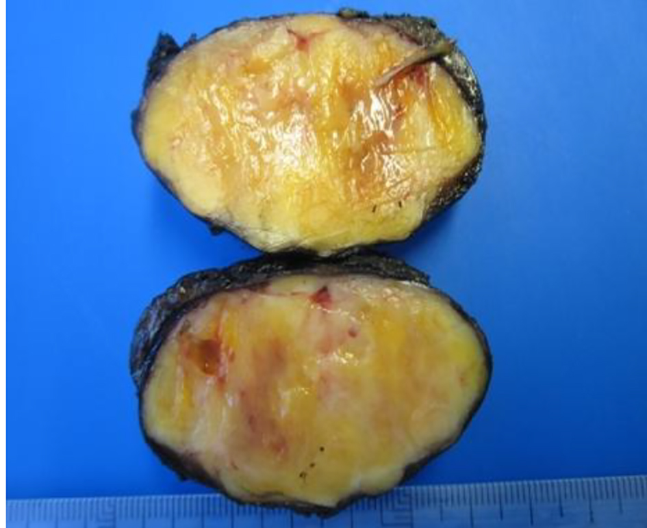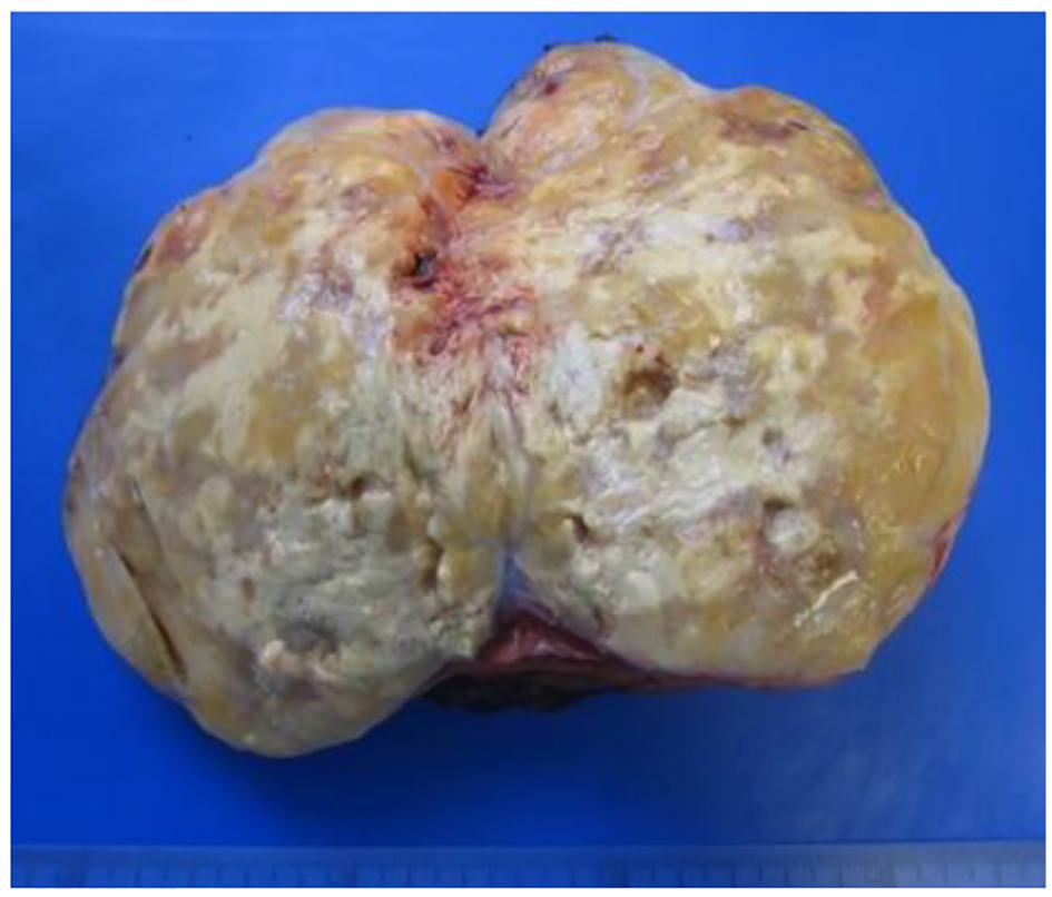 ![]() Click for large image | Figure 3. Resected mass measuring 10 × 9.5 × 6 cm in diameter. |