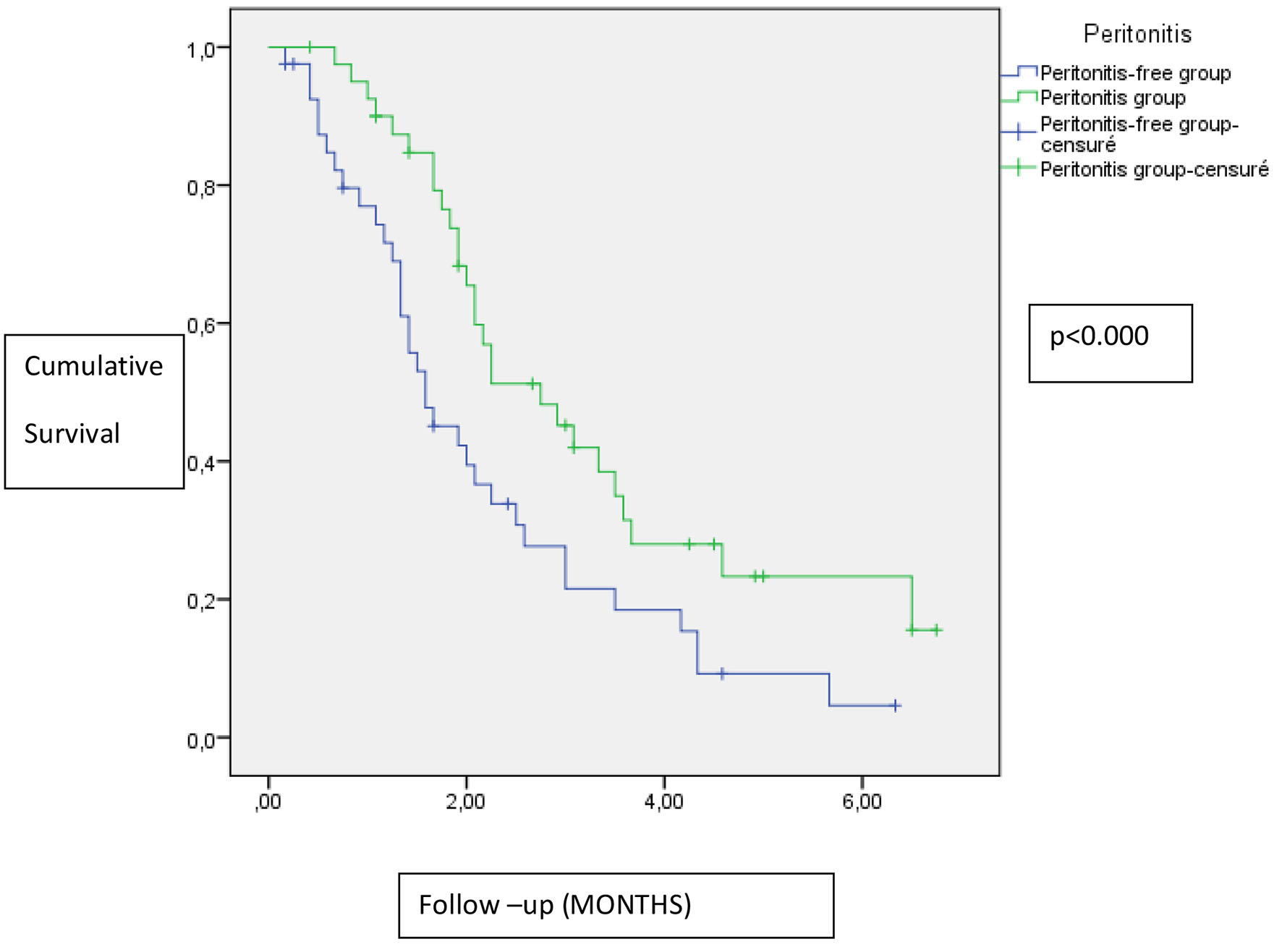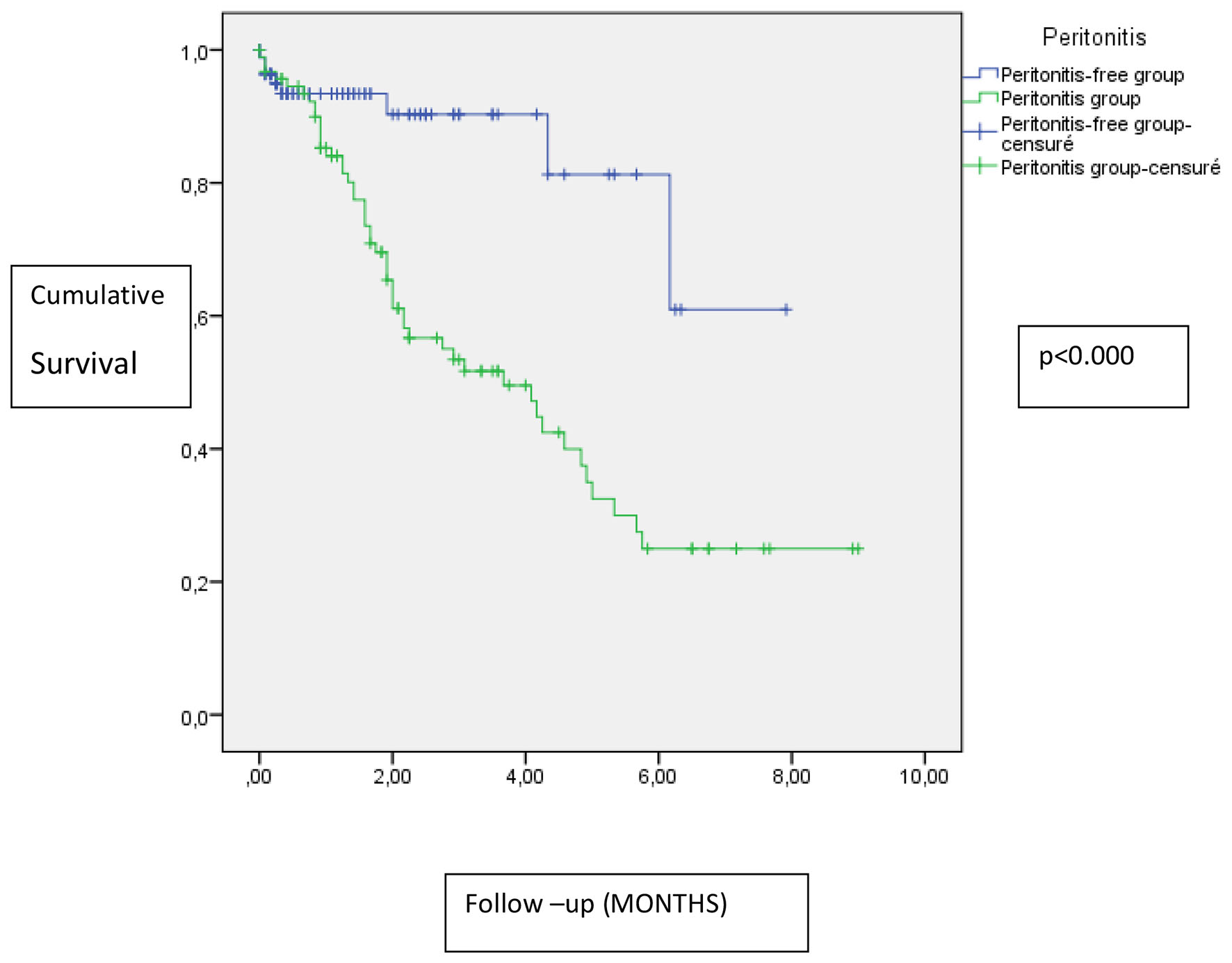 ![]() Click for large image | Figure 3. Impact of peritonitis on patient survival. |