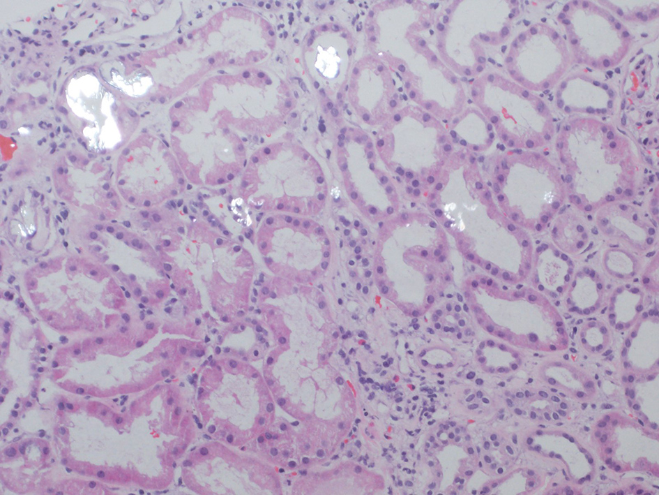 ![]() Click for large image | Figure 3. Injured tubules with luminal oxalate crystals. |