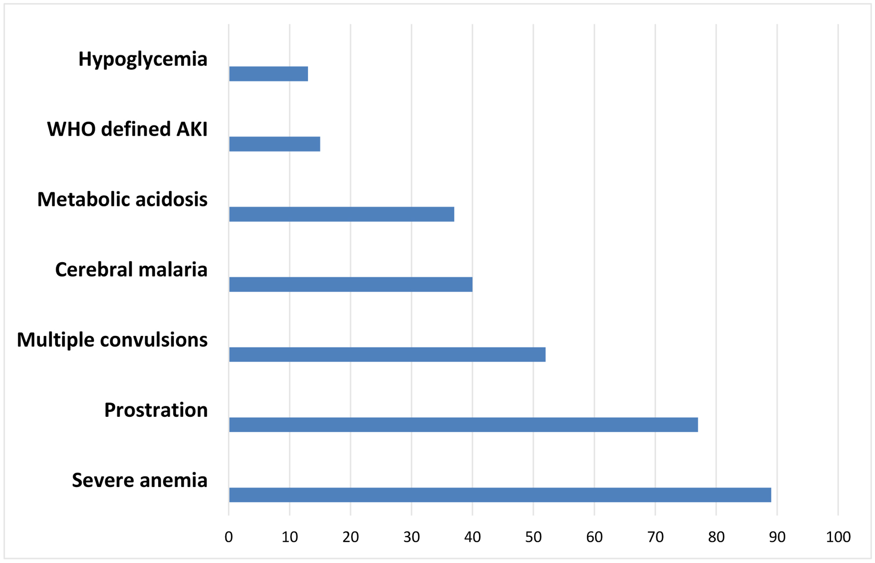![]() Click for large image | Figure 1. Bar chart showing the features of severe malaria found in the study population. |